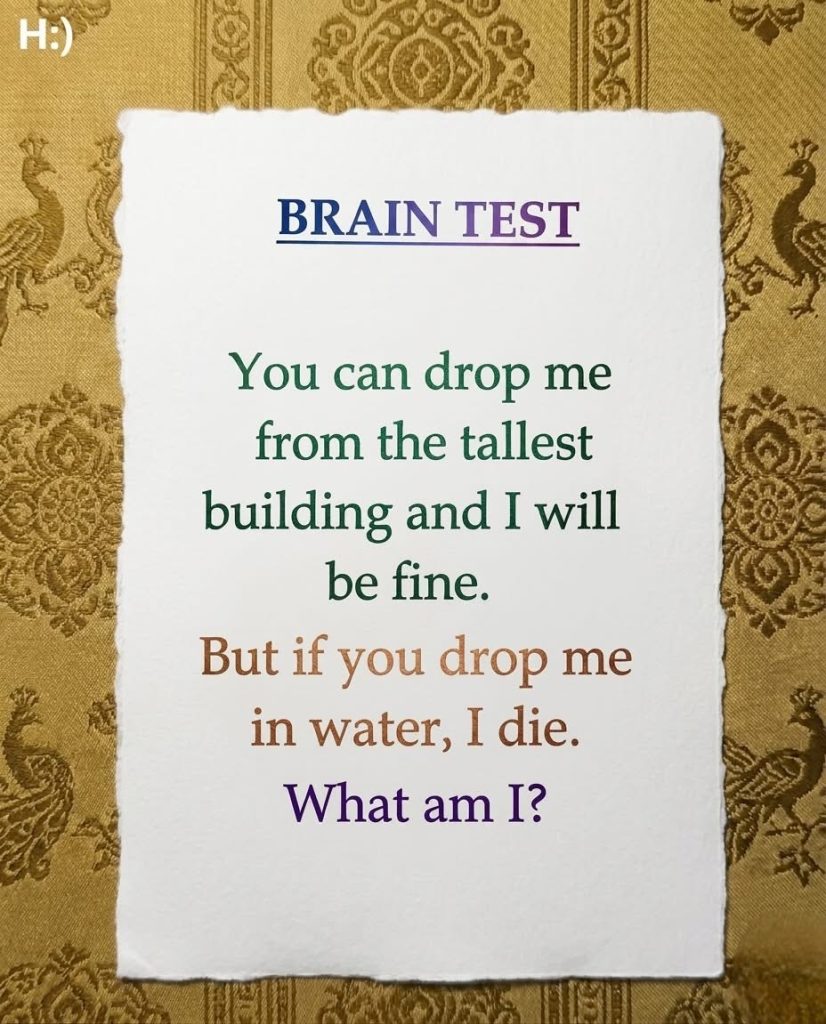 At first glance, this riddle creates the impression that it is describing something physically strong, durable, or even indestructible. The opening line is designed to immediately activate a very specific kind of thinking in the mind: the logic of survival under extreme conditions. When you hear that something can be dropped from the tallest building and still remain perfectly fine, your thoughts instinctively move toward the laws of physics. You begin to imagine impact force, acceleration, resistance, and structural integrity. In that split second, your brain starts building a catalogue of possible answers based on material strength. Metal becomes a candidate. Rubber feels plausible. Maybe glass is eliminated immediately, while stone, steel, or some engineered composite might enter consideration. The riddle cleverly guides you into this analytical mindset by framing the problem as if it is about endurance under gravity’s most dramatic demonstration. It creates a scenario that feels almost like a scientific test, where the correct answer must be something capable of surviving catastrophic impact without damage. This is a powerful form of misdirection because it narrows your attention to only one dimension of meaning—physical resilience—while quietly hiding the fact that the true answer may not belong to the physical category at all. In doing so, the riddle establishes a mental path that feels logical and trustworthy, even though it is leading you away from the solution. The brilliance of this setup lies in how naturally the human mind accepts it, because we are conditioned to interpret falling, height, and survival in literal terms. Without realizing it, we begin solving the wrong problem with complete confidence that we are on the right track.