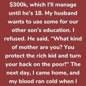 My ex passed away and left our 15-year-old son $300k, which I’ll manage until he’s 18. I also have another son, 12, from my second marriage, and my husband wants to use some of that money for our other son’s education.