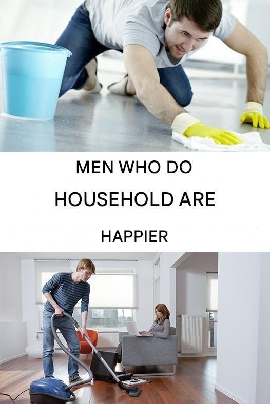 Gender Equality and Happiness: When men engage in housework, it can lead to more balanced relationships, reducing stress and resentment. Shared responsibilities promote a sense of equality, which positively affects relationship satisfaction and individual happiness.