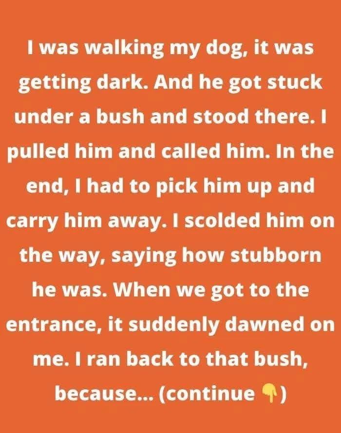 I was walking my dog as it got darker, and he got stuck under a bush, standing there looking for something.