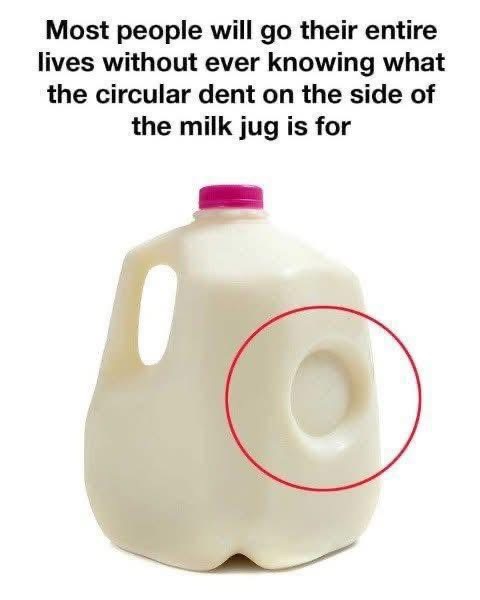 Most people never think twice about the small round dent on the side of a plastic milk jug, often mistaking it for a manufacturing defect. However, this indentation is actually a smart and purposeful design feature. Far from being cosmetic or accidental, the dent plays a crucial role in the jug’s durability, sustainability, and safety. It exemplifies how seemingly minor details in everyday products are often rooted in thoughtful engineering.First and foremost, the dent serves as a “flex zone” to help the jug withstand pressure. Milk is heavy, and plastic jugs are thin to reduce material use. Without reinforcement, the pressure from the liquid—especially during temperature changes—could cause the container to bulge, crack, or even leak. The dent provides a controlled area that allows for expansion and contraction, preventing damage and mess. This explains why you may hear a pop or feel movement when placing the jug on a surface—it’s simply adjusting to the pressure.
